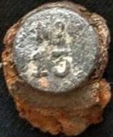 Hierboven één van de latere ongebruikte loodjes. Hierbij kun je goed kunt zien dat er ook op het gebied van loodjes is geïnnoveerd. Binnen in het loodje is een metalen schijfje zichtbaar waar het touw waarmee verzegeld werd doorheen werd gehaald voordat het zegel dichtgeknepen werd. Hierdoor zat het touwtje in het midden van het loodje en was het vrijwel onmogelijk om het zegel open te maken.