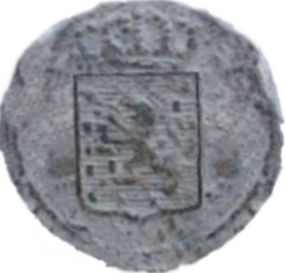 Ook dit is eigenlijk best een verfijnd wapenschild. Hierbij is echter wel rekening gehouden met de herkenbaarheid van het stempel. De afdruk heeft dan ook herkenbaardere lijnen doordat er waarschijnlijk gebruik is gemaakt van diepere groeven. Het schild waarin de leeuw staat heeft ook een echt veel dikkere lijn.