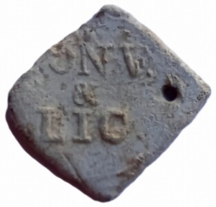 Dit is het laatste loden douaneloodje. Het is dan ook niet vreemd dat ook ongebruikte loodjes van dit type samen met gebruikte terug worden gevonden. Zelf ben ik in het bezit van een aantal van deze loodjes die afkomstig zijn uit een potje met oude knoopjes.