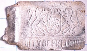 In het belasting en douane museum bevindt zich een verzegeltang met dezelfde afdruk en de letter “L” dus dat zou Limburg kunnen zijn. Zie https://data.collectienederland.nl/page/aggregation/bendmuseum/02481. De historische naam Limburg wordt echter pas sinds 1815 gebruikt om er het gebied van zowel de huidige Nederlandse als dat van de Belgische provincie mee aan te duiden. In dat jaar besloot koning Willem I de toen geheel nieuwe provincie, die voorheen met name voor het thans Nederlandse deel uit een lappendeken van vele gebiedjes bestond, en waarvan slechts een miniem stukje van het oude hertogdom Limburg deel uitmaakte, ‘Limburg’ te noemen.
