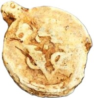 Hieronder een ankerlood in de vorm van een pijplood. Opvallend is dat de gekruiste ankers geen ankerogen hebben.