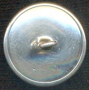 Knoop 22. Een echte zilveren knoop met het zilvergehalte merkje 835. Op de voorzijde de kroon van Willem III. Hiermee een datering ca 1849-1890.