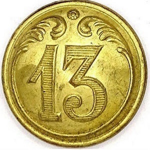 Een nummer 1 t/m 14 binnen een fleuron – 1e t/m 14e infanterie linie regiment
