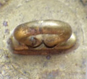 Knopen met convexe achterkant zijn meestal gevuld met gips (zie knoop hieronder), om de sterkte te vergroten en zo vervormingen te voorkomen.
