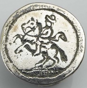 Op zich zou je deze knoop als losstaand kunnen zien, ware het niet dat ik ook twee andere knopen heb van ook lood-tin met hierop ruiters. Deze knopen zijn achthoekig en ik had al het vermoeden dat dit wellicht verwanten zijn van de iets grotere zilveren ruiterknopen. Nu er ook een knoop met een wapenschild bekend is wordt dit vermoeden versterkt. Er zijn immers, naast de zilveren ruiterknopen ook in dezelfde reeks, knopen met wapenschilden. Er is wel een verschil in hoe de afbeeldingen zijn aangebracht. De zilveren exemplaren zijn gegraveerd, de loodtinnen zijn gegoten waarbij de afbeelding op de knoop ligt.