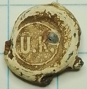 This is a small (approx. 15mm) customs seal for meat from approx. 1905. This is an export inspection (see article). The lead is often found in Great Britain, which is why it was long thought that UK stood for United Kingdom.