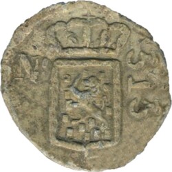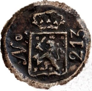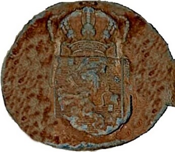 On one side is again, just like with all previous round types, the abbreviated Dutch national coat of arms. This is actually the only type where the length of the coat of arms seems to vary. It sometimes resembles Long weapon type, but also Medium weapon type.