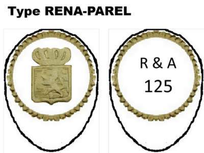 On one side we see a shorter coat of arms than before without a cross on the crown (type 2). The coat of arms is inside a pearl wreath. Hence the name RENA-PAREL