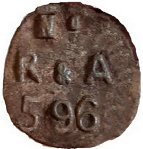 On the front, between the letters R and A, the coat of arms type is small. Around this is a circle in a thin line.