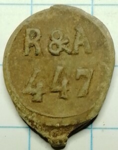 Above one of the later unused plumbs. Here you can clearly see that innovations have also been made in the field of weights. Inside the lead is a metal disc visible through which the rope used to seal was pulled before the seal was squeezed shut. As a result, the string was in the middle of the lead and it was virtually impossible to open the seal.