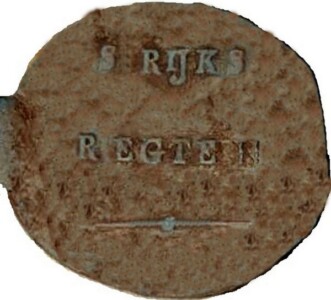 Rev: Text “’S RIJKS REGTEN” with a simple decorative bar underneath.