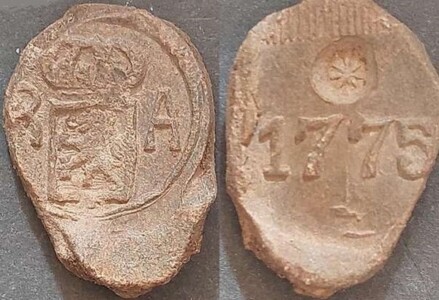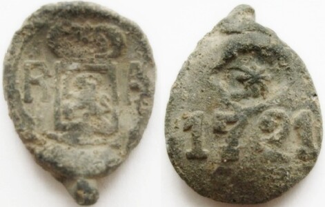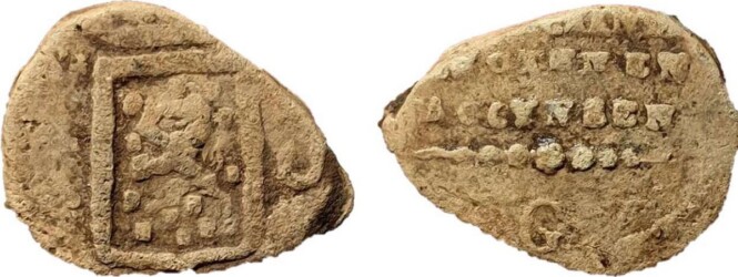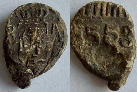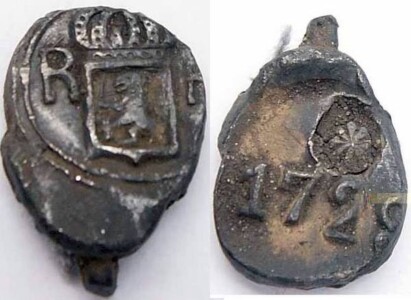 A customs seal found by Edwin Bode-Wormmeester, of the Amsterdam customs office. Next to it, for comparison, is a lead from the customs office of Marseille from the same period in time.
