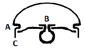 Hieronder een veel voorkomende bevestiging (stift) van Franse knopen.