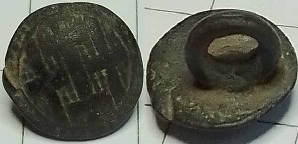 Livreiknopen met een diepliggende afbeelding (concaaf) dateren van voor 1810 (zie Detector Finds 1 ; Gordon Bailey) pag 18-21