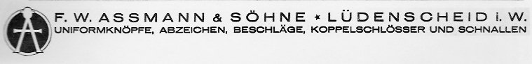 Het bedrijf Assmann & Söhne uit Lüdenscheid in Duitsland is opgericht in 1826. Het was één van de belangrijkste fabrikanten van knopen en gespen tijdens de tweede wereldoorlog. De catalogus van dit bedrijf is hier online te bekijken.