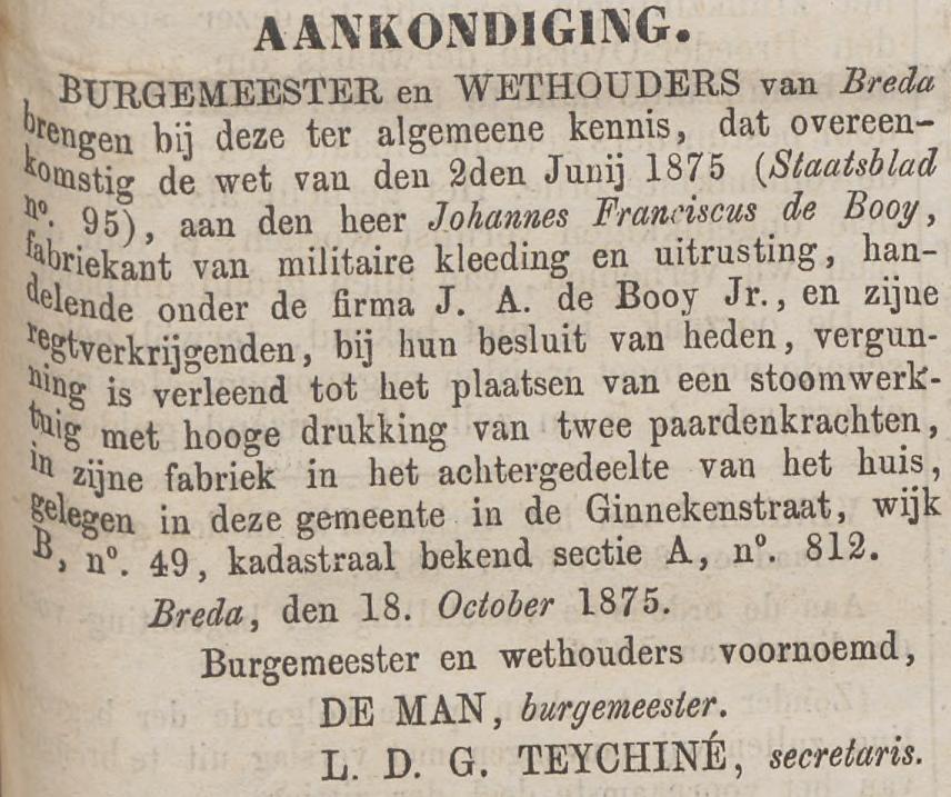 Fabrikant J.A. de Booy Jr. Den Bosch ca 1846-1874, Breda ca 1875-1888