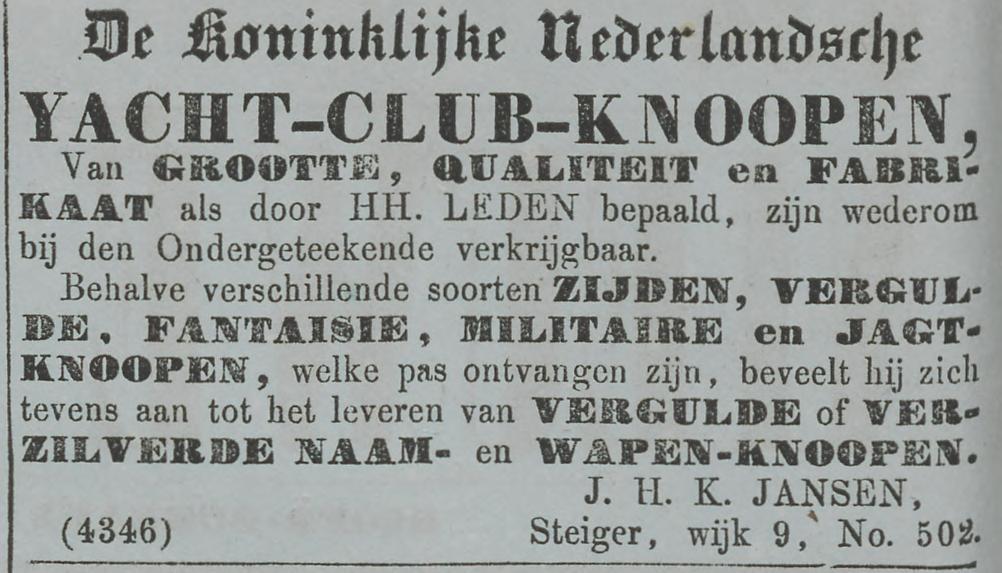 Knopenmaker J.H.K. Jansen (later Jansen & zoon) uit Rotterdam. Periode ca 1827 – 1867