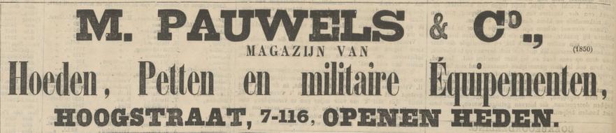 In 1871 zien we voor het eerst M.Pauwels & Co uit Rotterdam op Hoogstraat 7-116. Het is een kleermaker die ook soms knopen laat maken.