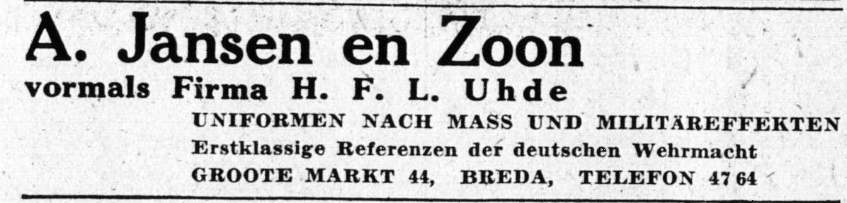 Saillant detail is dat het bedrijf A. Jansen later in 1941 leverancier is van de Wehrmacht waarbij de Duits klinkende naam Uhde nog wordt aangehaald.