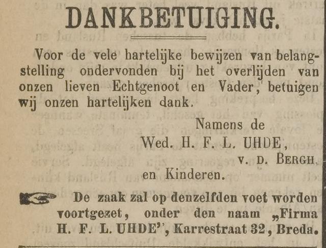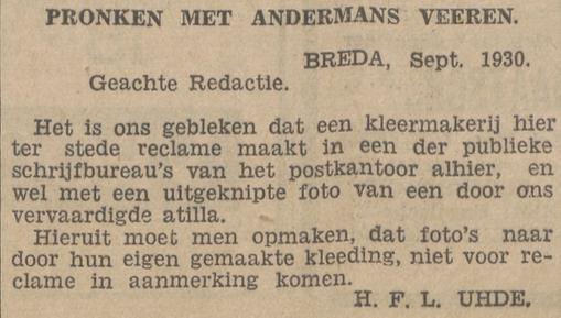 Later dat jaar staat er echter een ingezonden brief die weer is getekend met H.F.L. Uhde.