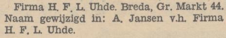 In 1913 overlijdt H.F.L. Uhde maar wordt het bedrijf wel doorgezet.