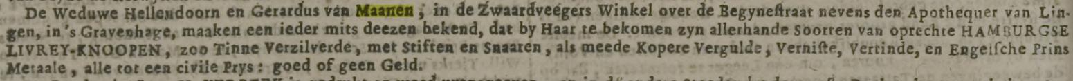 De vroegste livreiknopen werden rond 1737 in Nederland geïntroduceerd zoals te zien is in onderstaande krantenadvertentie.