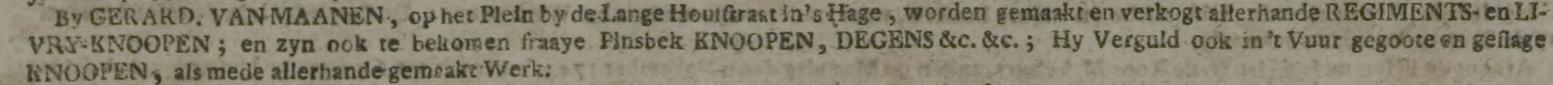 leydse courant 1741In deze krant uit 1741 spreekt men over: allerhande soorten van REGIMENT KNOOPEN, als Zilvere, Vergulde, Verzilverde, Tin mer Zilvere Plaaten, Vetinde, Vemiste, Kopere. SOLDAATE KNOOPEN