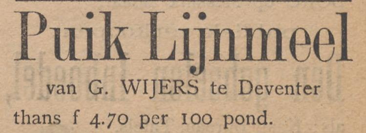 Er zijn in de 19de eeuw advertenties te vinden van een A.G. Wijers (en zonen) met een stoomzagerij. Loodjes die gevonden zijn vooralsnog alleen van “G. Wijers”. G. Wijers eerste advertentie duikt pas op in 1899.