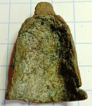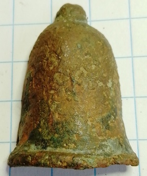 Belvormig object, wellicht klein schepje gebruikt voor kruiden en specerijen of kruit. Kruideniersschepje of apothekersschepje. Het zou ook een halve bel kunnen zijn al worden die normaal gesproken uit 1 stuk gegoten.
