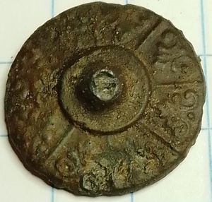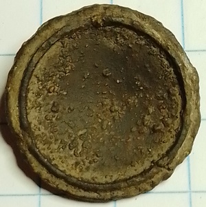 Dekseltje van een speelgoedservies die op een theepotje of suikerpotje heeft gezeten. Datering 19de of begin 20ste eeuw