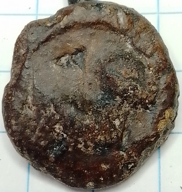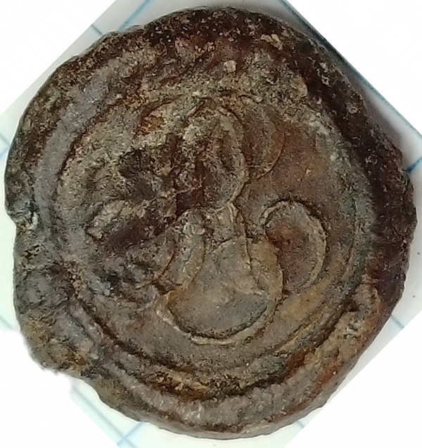 Nog niet gedetermineerd loodje, waarschijnlijk van één van de Duitse staten. In het midden de letter R die veel door vorsten werd gebruikt met de naam Frederick.