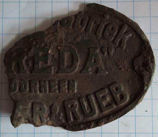 Bronzen machineplaat van “Machinefabriek Breda voorheen Backer Rueb”. Dit bedrijf bestond al in 1855 maar begon in 1884 deze naam te dragen. Deze fabriek maakte stoommachines en was een belangrijke leverancier van vele stoomtrambedrijven. Het kan goed dat deze plaat op een stoomtram heeft gezeten van de Zuider Stoomtramweg Maatschappij die o.a. in Oosterhout reed tot 1937.