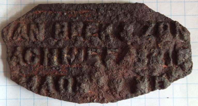 Gietijzeren merkplaat die op een machine heeft gezeten.