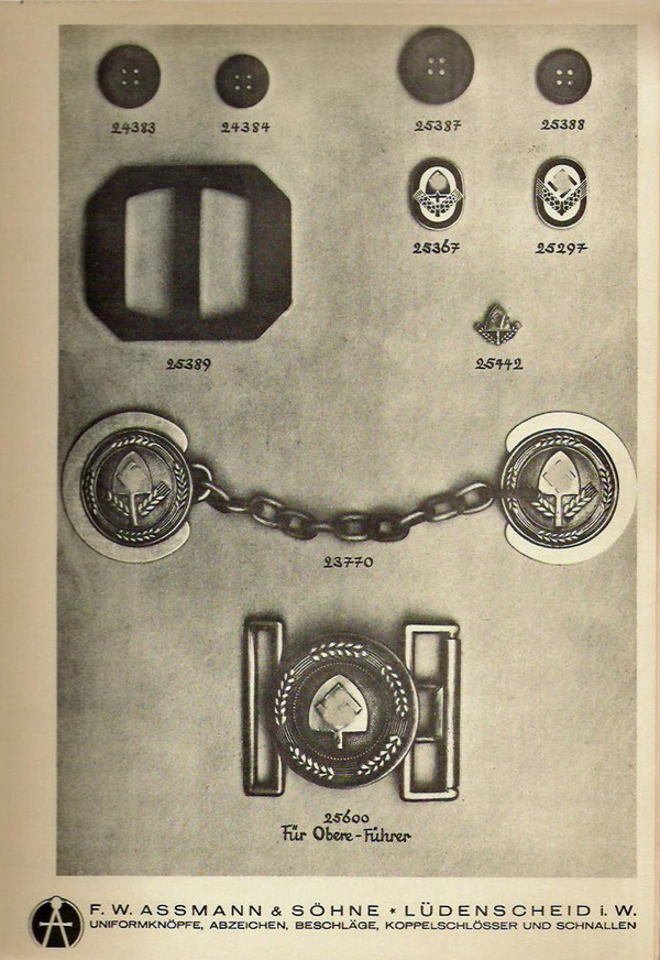 Een uit een koperplaat geponste gesp waarschijnlijk van de firma Assmann uit WWII