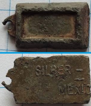 Hanger silber Mexico Author: Mark Ouwerkerk Published Date: 4 mei 2021 Klein hangertje met de Duitse tekst “Silber Mexico” Categorieën: 020 - akker in Den Hout, 07 hanger - sierhanger Gerelateerde producten gesp-20-5 Lees verder kruisje-20-1 Lees verder riemverdeler (middendeel) A van meerdelige gordelsluiting (1400-1649) Lees verder gesp-20-3 Lees verder