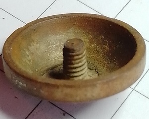 Een kegelvormig object zo groot als een knoop met in het midden een as met schroefdraad. Er bestaan knopen met schroefdraad dus wellicht is dit een knoop.