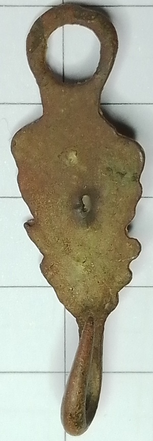 Opvallend bij dit nog net gecategoriseerde kledinghaakje is de verhoogde bolling (neus) in het midden. De vorm heeft veel weg van een man met een verhoogde neus en grote snor.