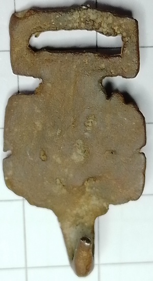 Kledinghaak grote bloem. PAN-type 08-02-01-01-03 gegoten kledinghaak met één haak Groep C Datering 1500 tot 1649
