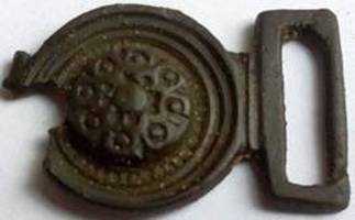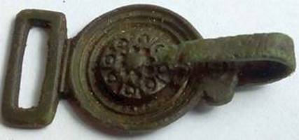 Dit object heeft veel overeenkomsten met kledinghaakje type E.12.5.01 (ca.1500-1600) Verhoogde bloem op een ronde achtergrond