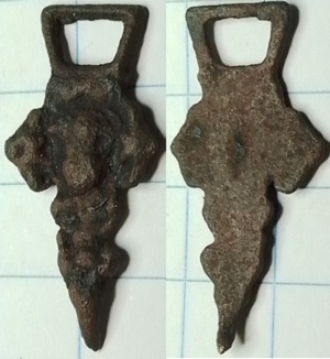 PAN-type 08-02-01-01-03 gegoten kledinghaak met één haak Groep C Datering 1500 tot 1649
