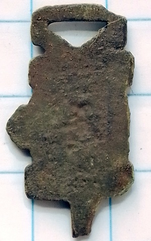 PAN-type 08-02-01-01-03 gegoten kledinghaak met één haak Groep C Datering 1500 tot 1649