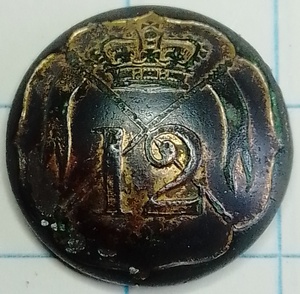 knoop van de 12th royal Lancers met op de achterkant de tekst “w. jones dublin – button maker to his majesty”. Dit maakt de knoop erg bijzonder.