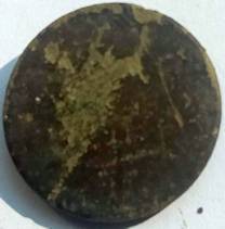 Platte knoop, Brits datering rond 1820 met opvallend goed leesbare achterkant