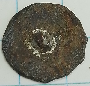 Pewter (volgens referentie) platte knoop met het cijfer 67 van de 67th regt of foot.