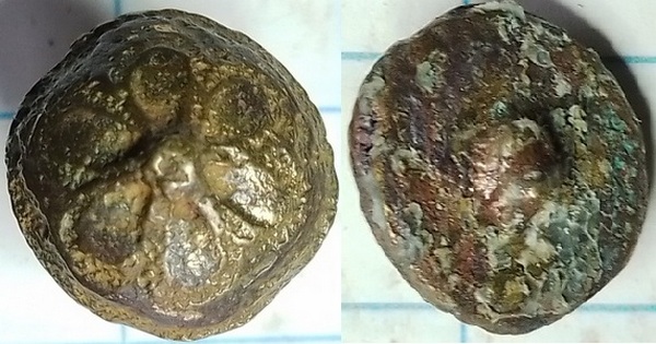 Wambuis knoop met bloem in reliëf (6 blad). Deze is verguld geweest.