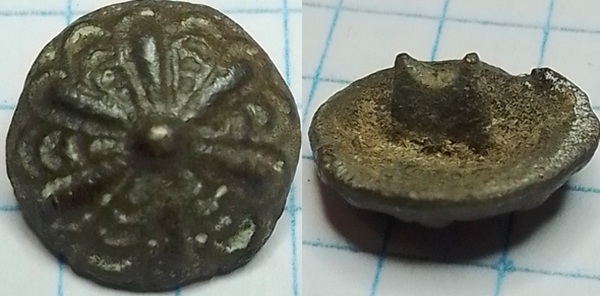 knoop bloem druppelblad op mandje. Hetzelfde als Baart74-009 en Baart77-238