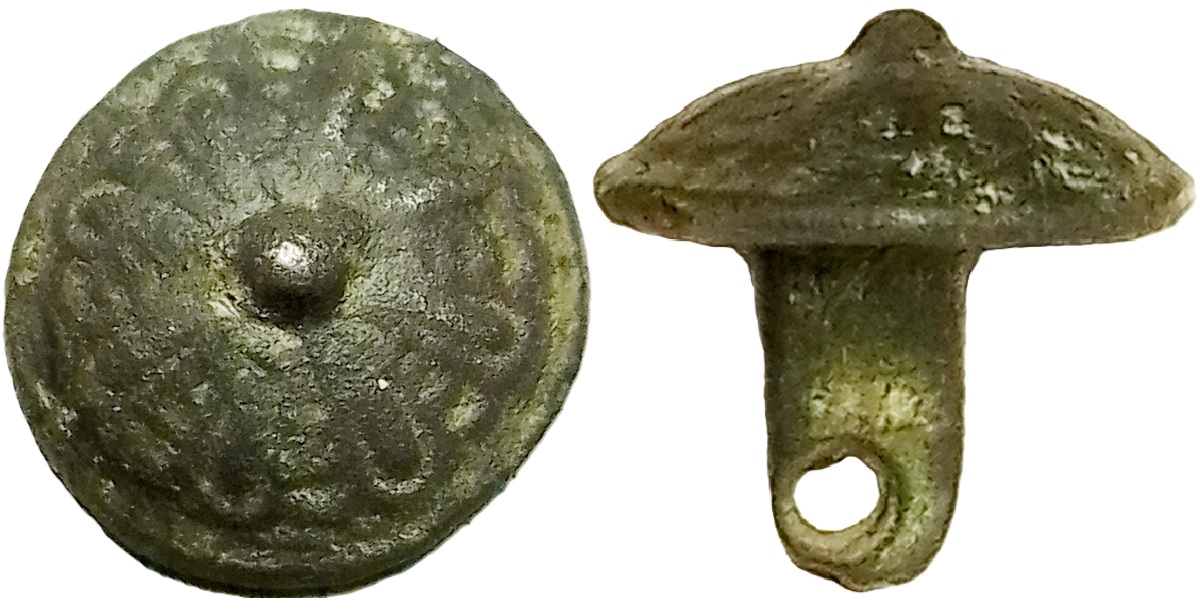 knoop bloem druppelblad op mandje. Het staafoogje zit niet in het midden. Hetzelfde als Baart74-009 en Baart77-238