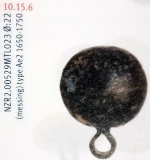 Bolle knoop waarbij je goed kunt zien dat deze uit 2 aan elkaar gesoldeerde delen bestaat. Twee ontluchtingsgaten