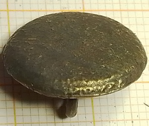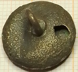 Kwartbolle holle knoop met ontluchtingsgat. Op de achterkant een gesoldeerd oog