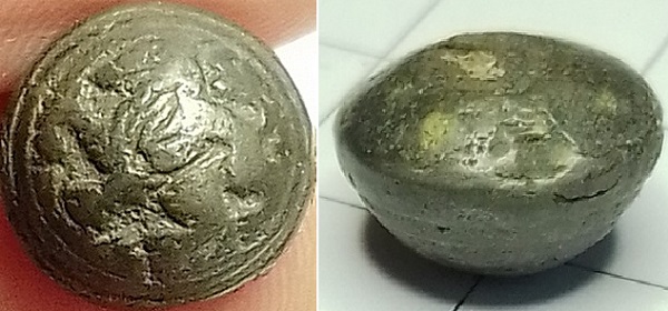 knoop met hierop een afbeelding van een naar links klauwende leeuw met zwaard